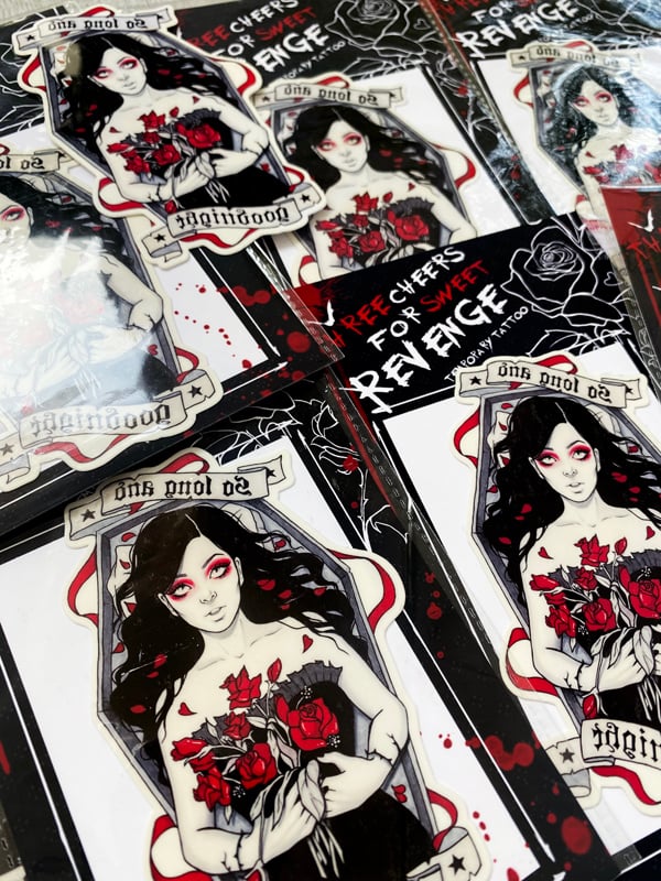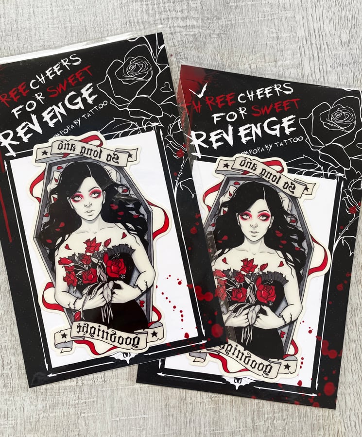 Tattoos have been printed onto non-toxic, skin-safe temporary tattoo paper.