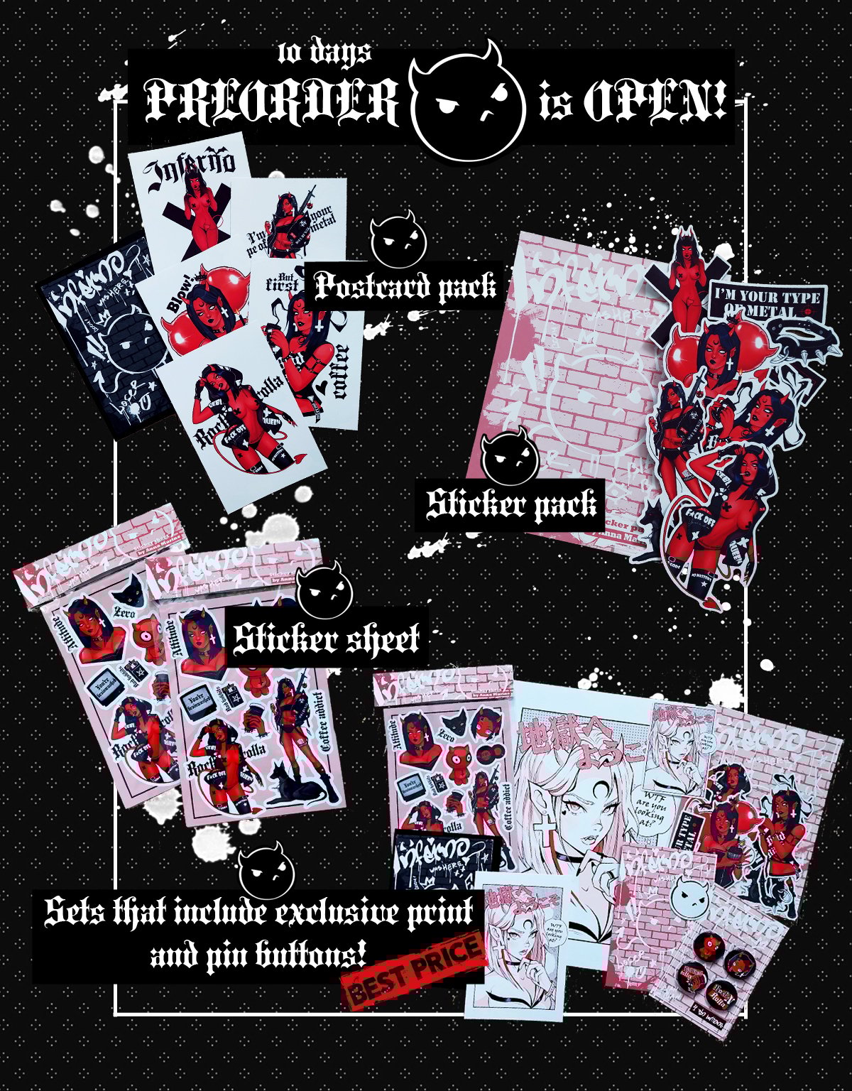 Set of 8 stickers (glossy), beautifully packed + free gifts with every order!