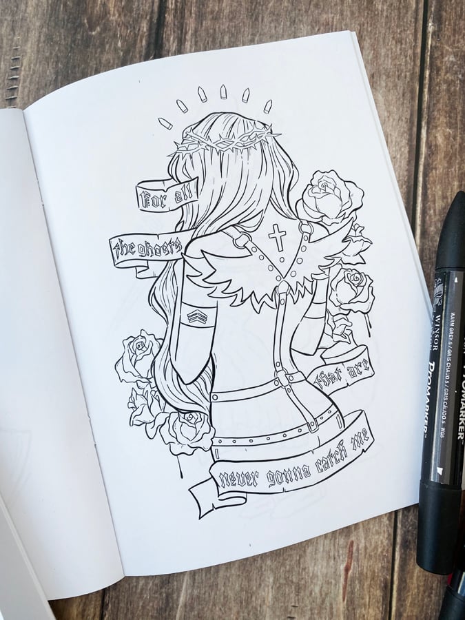 Physical book: - 14 colorable illustrations of MCR fanart artworks